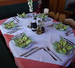 Und hinterher? Da freuen sich große und kleine Gäste auf diverse Eisvariationen oder unser hausgemachtes Tiramisu. Apropos kleine Gäste: Kinder erhalten natürlich eigenen Speisen und werden mit besonderer Gastfreundlichkeit bedient. Für diejenigen, die keine Lust auf Stillsitzen haben, halten wir in unserem Gastgarten einen großen und gepflegten Kinderspielplatz bereit.